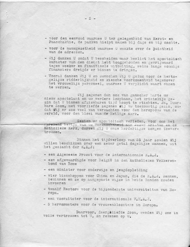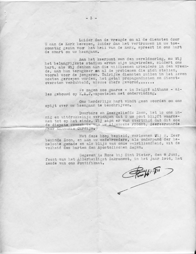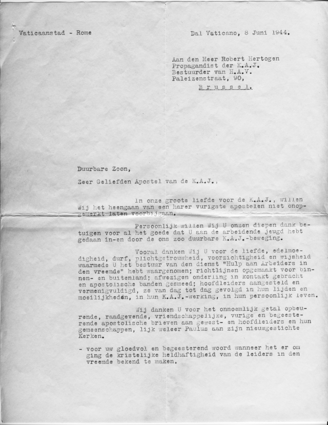 Brief van 'Paus PIUS XII' aan Robert Hertogen
